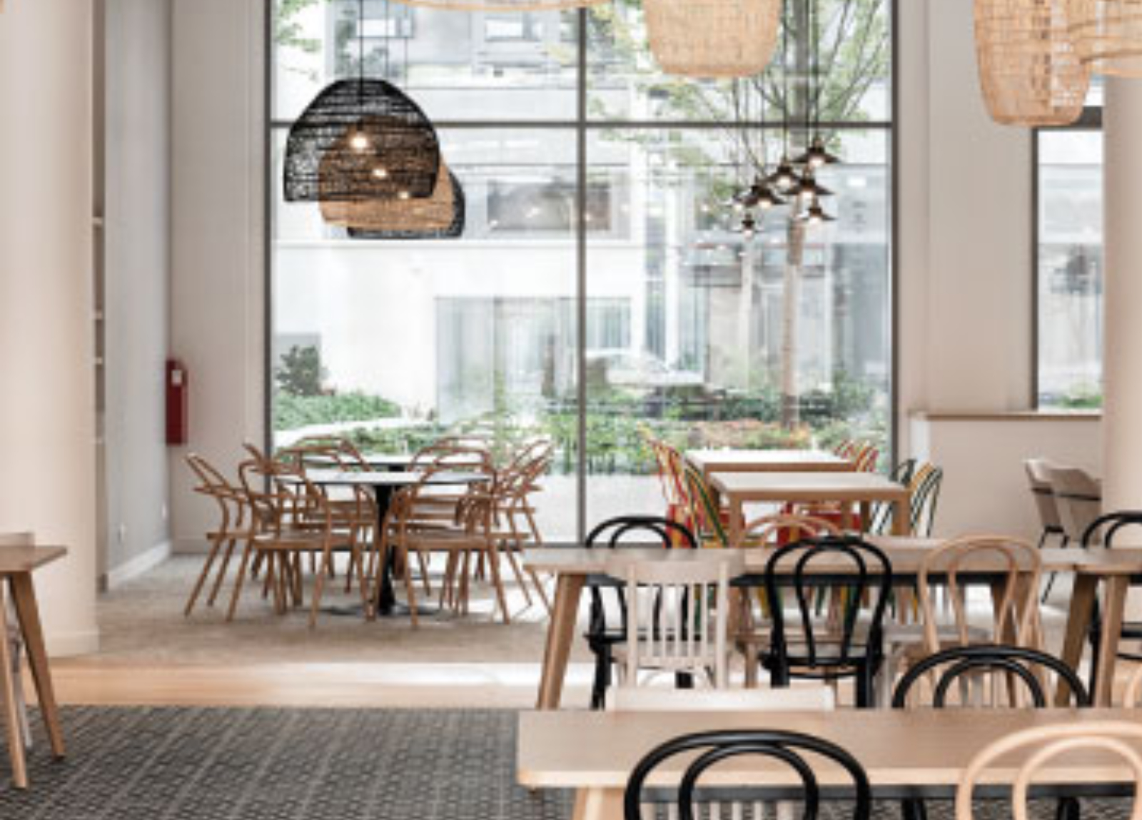 Le campus dispose également d’espaces détente et de restauration, pensés pour offrir un cadre convivial et stimulant. L’accent a été mis sur le bien-être des étudiants avec des zones de relaxation, de sport, une terrasse et une cafétéria moderne.